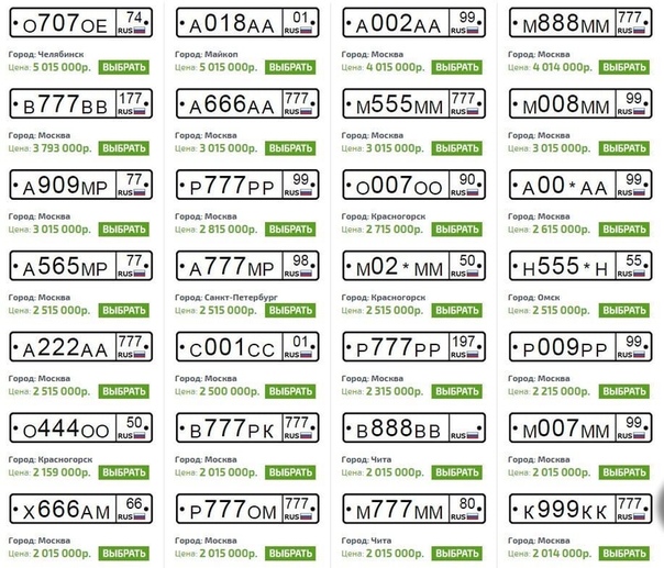 Цены на российские номера авто